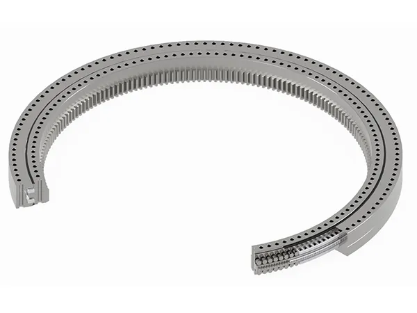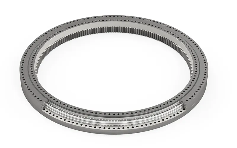 Pitch bearings, also known as blade bearings, are important components in modern wind turbines. They connect the rotor hub to the rotor blades, allowing for the necessary oscillation to control the turbine’s load and power output. The pitch system adjusts the blade’s aerodynamic angle to the wind, positioning the blades for optimal energy capture. It also plays a key role in emergency braking scenarios, where the pitch bearings are used to quickly adjust the blade angles to minimize wind resistance and stop the turbine safely.