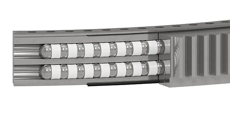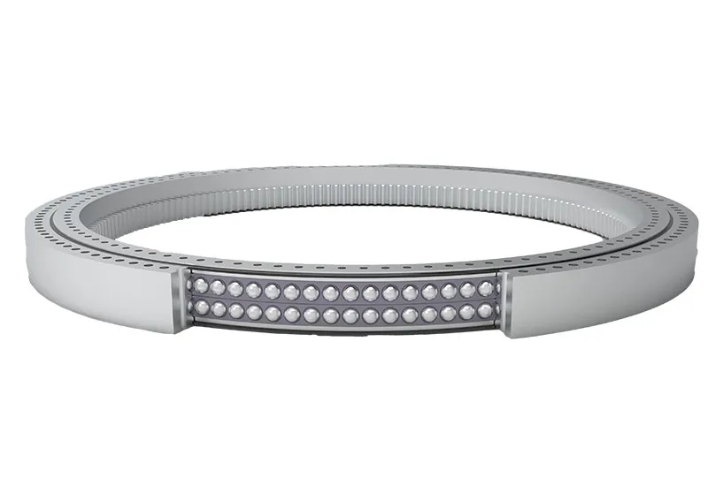 Double-row four-point contact ball bearings are designed to meet the demands of wind turbine pitch systems. Featuring two rows of steel balls guided by a four-point contact raceway, these bearings can simultaneously manage significant axial and radial loads. The four-point contact structure provides stable support within a defined angular range, making them particularly effective for continuous blade pitch adjustments. With models suitable for wind turbines ranging from 1.5MW to 20MW, these bearings are versatile and robust, ensuring reliable performance under the challenging conditions typical of wind turbine operations. LYXQL has successfully developed and supplied various types of pitch bearings to meet the diverse needs of the wind energy sector.