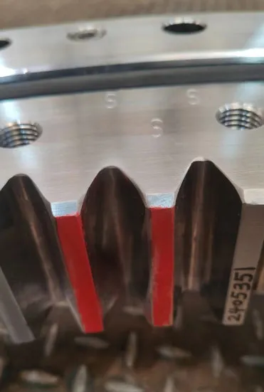 Before fully tightening the installation bolts, it's important to conduct a gear mesh inspection on the section of the slewing bearing marked with green paint. This step ensures that the gear mesh clearance meets the required precision standards, which is crucial for the proper functioning of the gear teeth.