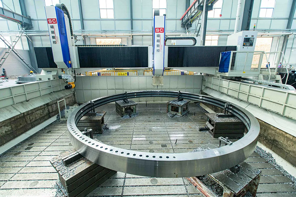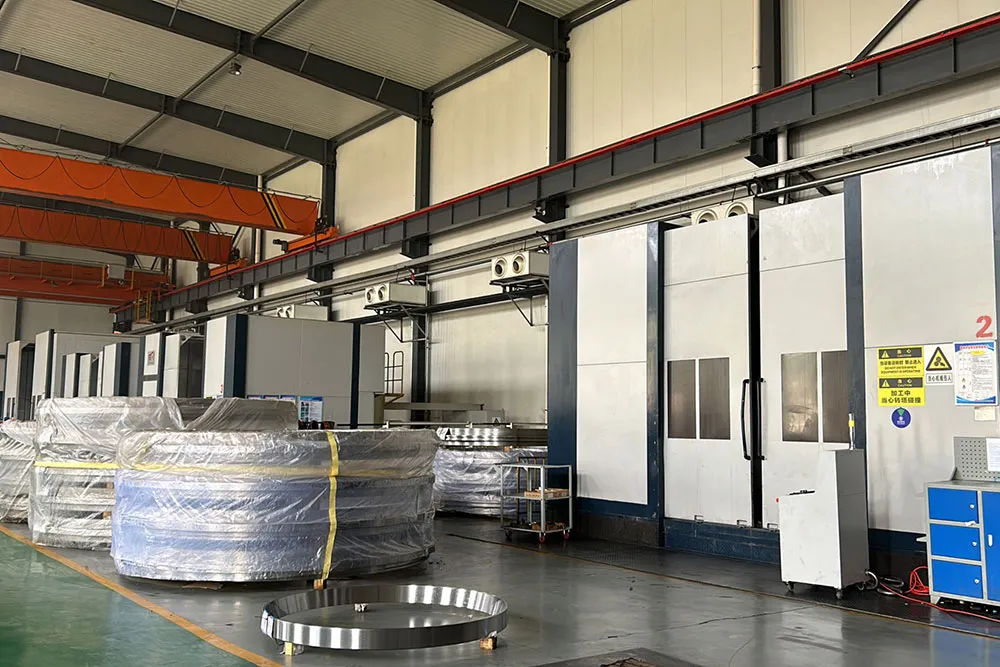 At LYXQL, we produce large slewing bearings, primarily used in wind power and tunneling industries. Our facility is equipped with advanced machines, including the Saet CNC seamless induction hardening machine, high-speed precision gear milling machines, and CNC five-axis machining centers. These tools help us continuously enhance our production capabilities.