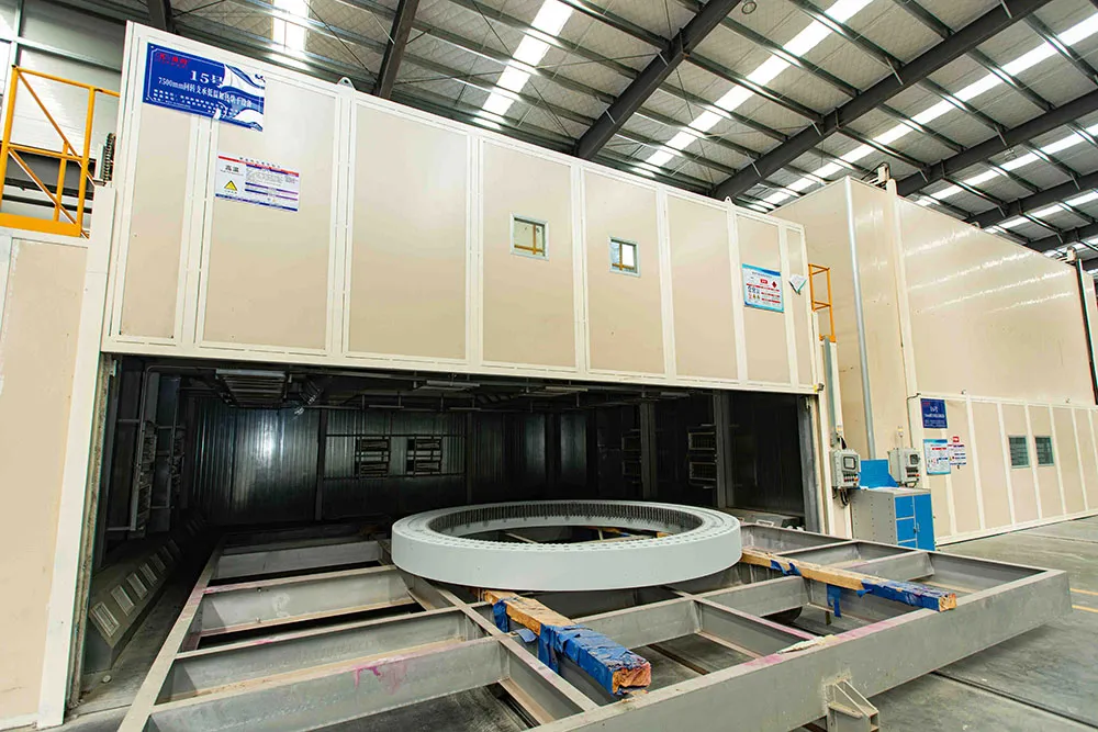 We use advanced seamless induction hardening technology without soft zones on bearings up to 10 meters in diameter, applicable to wind turbine main bearings, shield tunneling machine bearings, large centrifugal casting machine bearings, and rolling mill bearings.